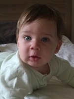 Хватает все вокруг. Чай с Сеней на руках не попьешь - отнимет кружку, по телефону тоже не поговоришь)) Руки постоянно должны быть чем-то заняты; если поблизости нет ничего, что можно взять, покрутить и попробовать, достает изо рта пустышку (потом удается самому положить обратно в рот), хватает свою одежду. Когда игрушка выпадает из рук, поднимает сам, если она находится в зоне досягаемости, если нет - тянется. Трогает игрушки, даже если лежит на животе с опорой на руки. Очень интересуется кружками и тарелками. Кушает Сеня в среднем 6 раз в день. Во время кормления либо быстро засыпает, либо отвлекается, крутит головой по сторонам, закусывает пальцем, отпускает комментарии нараспев. В последнее время опять стал часто срыгивать (теряюсь в догадках, из-за чего). Дала лизнуть яблоко и банан, который он просто пожирает глазами. Кушать пока ничего, кроме своего молока, не даю. Гуляем снова в основном в коляске, т.к. в слинге стал засыпать (вероятно в связи с похолоданием), что есть не удобно и Сене (скис набок), и мне (9кг таскать уже несколько ощутимо). В коляске, конечно тоже неудобств хватает, начиная с того, что ее надо выпереть из подъезда; потом Сеня начинает кряхтеть, выть и прочими звуками выражать свое недовольство (положили!). Иногда конечно засыпает, но чаще еле откатываем час, пока совсем не разноется. Любит, когда ему поют. Да и сам не прочь спеть. Успокаивается, если включить музыку. Внимательно слушает, когда с ним разговаривают. Нравится играть в "прятки". Улыбается при встрече, если в настроении. 4 месяца