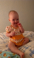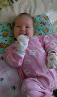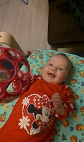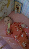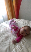 Дочка начала жевать пустышку, разрабатывает десна! Осилили первое путешествие на самолете- летали к бабули с дедом в Краснодарский край! Дочка очень хорошо перенесла поездку, почти всю дорогу спала! Стали купат доченьку в большой ванне, в маленькую уже не помещается! Попробовали пососать яблочко, ну очень понравилось! 3 месяца