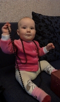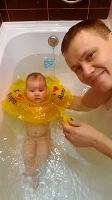 Наш любимый гномик! Дочка по утрам наводит красоту- причесывается! Улыбашки! Начала болтать наша девочка! Попробовали купаться с надувным кругом, дочке не очень понравилось, тревожно ей было без папиных рук! Дочка накчилась переворачиваться со спинки на животик! Не перестает радовать нас наше солнышко! Доченька очень любит строить глазки и показывать язычок! 2 месяца