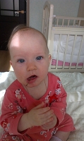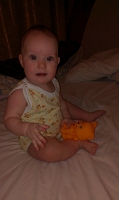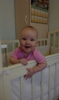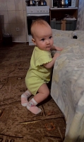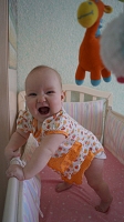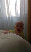 теперь наша любимая игрушка- это резиновая курочка, Полина готова ее проглотить! а все потому что ей очень удобно чесать десна! Доченька очень любит играть в прятки, особенно перед сном! 04.04.2016 доченька села на попу! После этого знаменательного дня дочка стала пробовать вставать в кроватке и спустя 9 дней дочка это сделала!!! Еще через 3 дня дочка начала ползать, подползает к опоре и встает, довольная!!! 5 месяцев