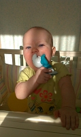 Наш любюмый папа научил дочку держать погремушку! Ходили на прием к неврологу, врач нас хвалила за активность! 07.11.2015 мы покрестили нашу доченьку! Теперь наша Аполлинария под защитой! 20.11.2015 сделали прививку от БЦЖ Новорожденный