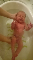На 3-й неделе стал вечерами орать- истерики сразу после купания. Купался сначала с недоверием. Мыли в ванночке, но к 4 -й неделе он из нее вырос. Перешли в большую. Выдерживал в ванне по 10 минут, потом начинал орать.